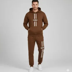 Men’s Fleece Printed Sweatshirt Track Suit, 2 Pcs in Brown